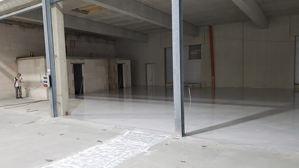 Der neue Boden des Zwischenbaus, sowie ein Teil des alten Werkstattbodens wurden mittels Kugelstrahlverfahren für die neue belastbare Epoxidharz-Grundierung vorbereitet. Zudem wurden insgesamt 220m alte Fugen des Werkstattbodens gereinigt und anschließend verschlossen. Die mit dem Kugelverfahren behandelten Bodenoberflächen wurden mit einem langlebigen Epoxidharz von Remmers grundiert. Der Werkstattboden bekam zusätzlich noch eine Kratzspachtelung, um kleine Risse und Unebenheiten auszugleichen. Die abschließende Endbeschichtung der Böden erfolgte mit einer Remmers-Hartkornbeschichtung, die den Boden verschleißfest und besonders belastbar macht.