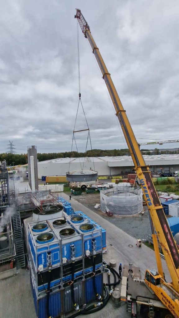 Es wurde eine zerstörungsfreie Werkstoffprüfung der Schweißnähte durch unser Nietiedt Fachpersonal sichergestellt. Zu dem wurden die Tanks isoliert und verkleidet. Ein Tank hatte eine Höhe von ca. 14,5 Metern und einen Durchmesser von 9,8 Metern!