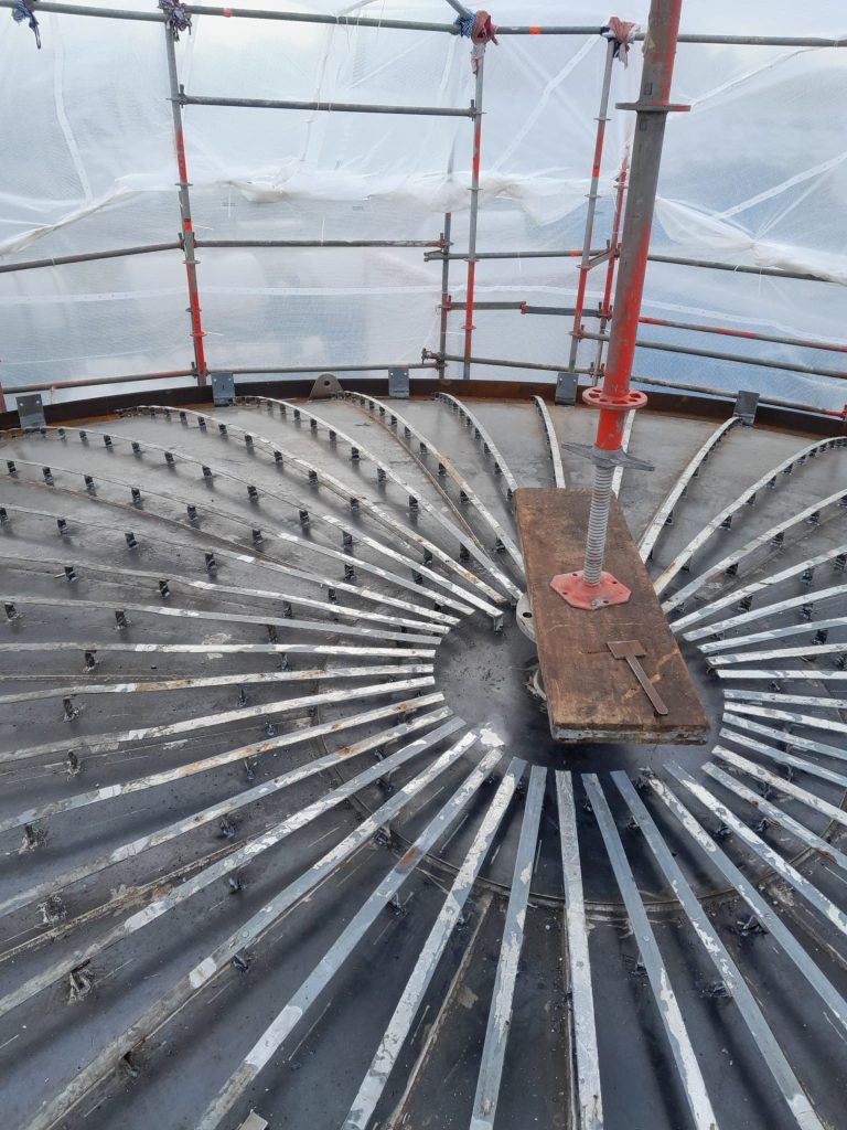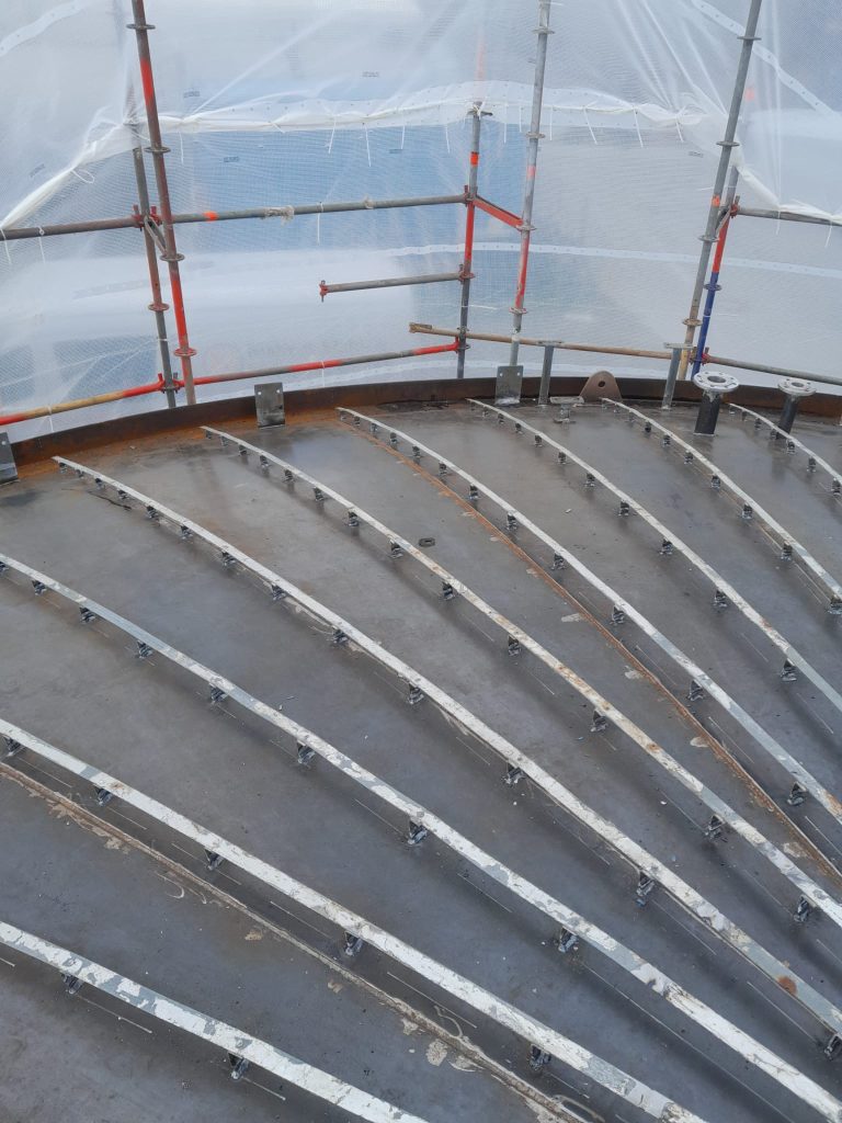Den Stahlbau, Gerüstbau und die Oberflächentechnik, Wilhelmshaven. Unser Nietiedt-Stahlbau hatte die Aufgabe, Aufmaß zu nehmen und im gleichen Atemzug eine Einzelteilzeichnung der Biotanks zu erstellen. Das Ganze wurde mit einer Bauleere (Schablone) angefertigt. Parallel dazu folgte die Reinigung der Tanks.