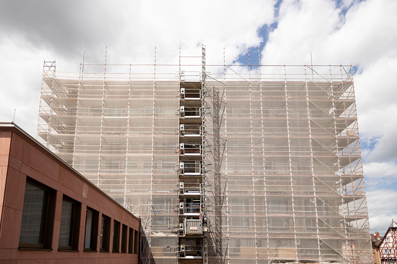 Die Nietiedt-Gerüstbauer haben das Rathaus in Aschaffenburg eingerüstet. Im Zuge dessen wurde auch ein Bauaufzug errichtet, um Personen und Material zu transportieren. Unsere Mitarbeiter in Aschaffenburg sorgten für die fachgerechte Planung und Montage sowie für die vorgeschriebene Sicherheit im Gerüstbau.