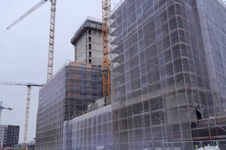 Unser Hamburger Gerüstbau-Team hat ca. 14.000 m² Fassaden-Gerüst in der Klasse W09 mit Bekleidung verbaut. Ein extrem beeindruckendes Kunstwerk wurde geschaffen!