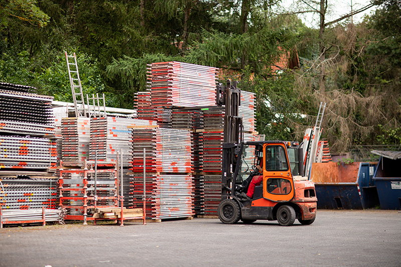 Unser Stützpunkt in Aschaffenburg ist auf dem Gelände des früheren Auslieferungslager der Binding-Brauerei beheimatet. Ein großer Teil unser Mitarbeiter an unserem Standort im bayerischen Mainfranken kennt sich schon lange und arbeitet sehr vertrauensvoll zusammen. Unsere Leistungsbereiche Fassadengerüstbau und Industriegerüstbau sind hier im Stadtteil Damm in der Glattbacher Straße 82 angesiedelt und auf einer Logistik-Fläche von knapp 6000 Quadratmetern steht dem qualifiziertem Personal dort neben einem leistungsfähigen Fuhrpark von 12 Fahrzeugen auch eine jederzeit genügende Menge an Fassaden- und Modulgerüsten für die vielfältigen Einsatzgebiete rund um das Thema Gerüstbau zur Verfügung.