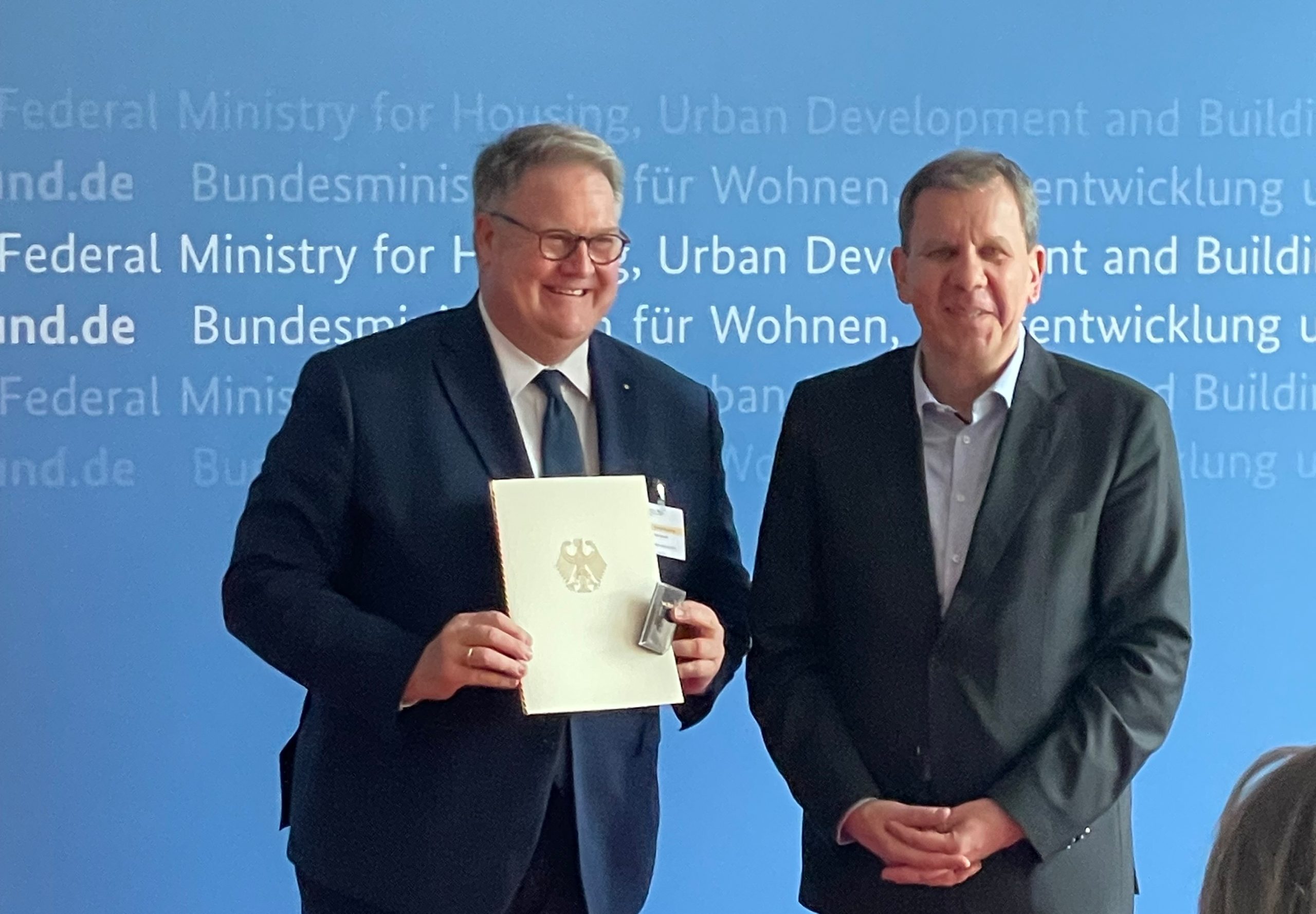 Die heutige Auszeichnung nahm Herr Ministerialdirigent Dirk Scheinemann im Auftrag von Frau Minsterin Clare Geywitz vor.