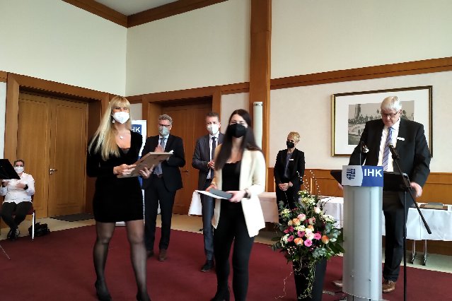 Unsere Auszubildende Jacqueline India John (vordere Reihe, dritte von links), hat ihre Prüfung zur Kauffrau für Büromanagement mit der Note 1,0 absolviert. Somit ist Frau John als Kammerbeste der IHK ausgezeichnet worden.